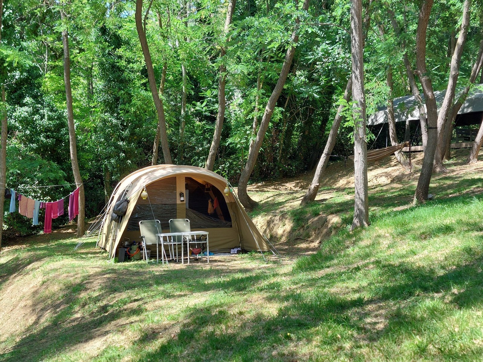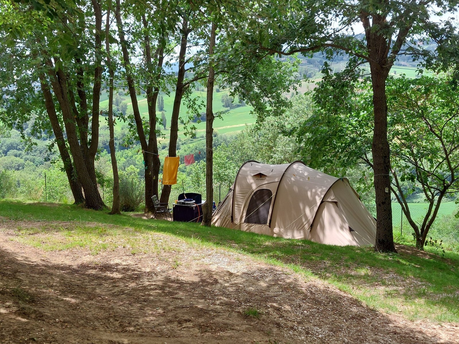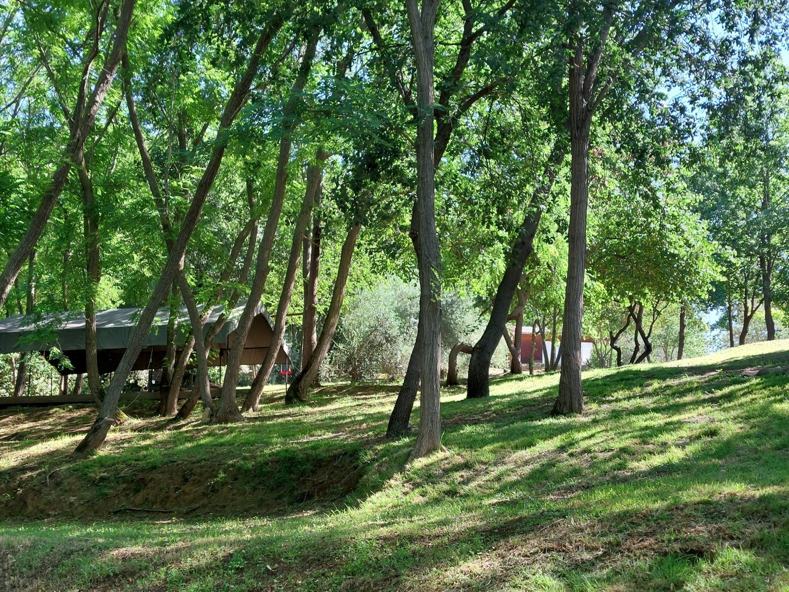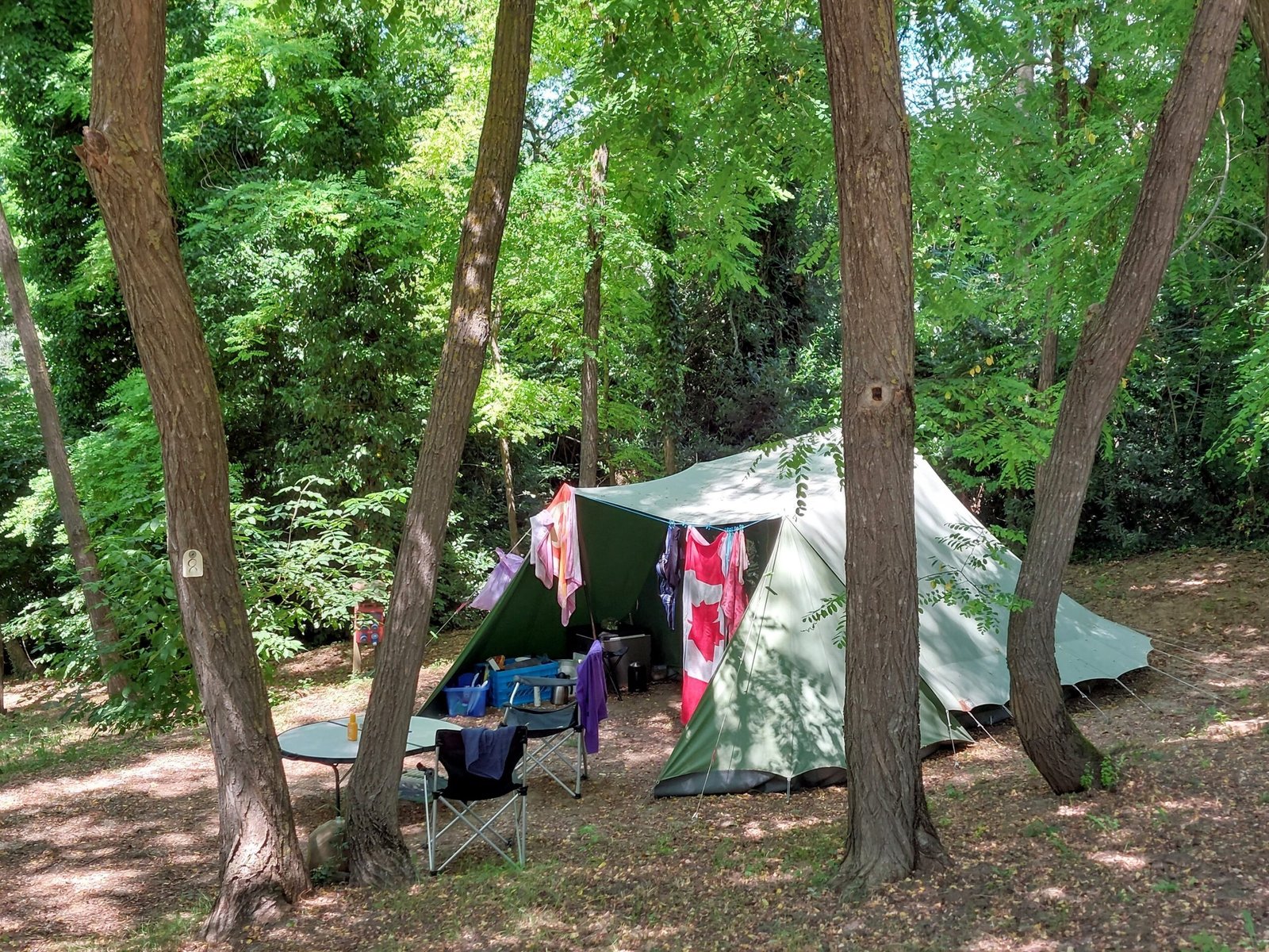 The 16 pitches are made of terraces with trees for shadow and with a lot of private space.